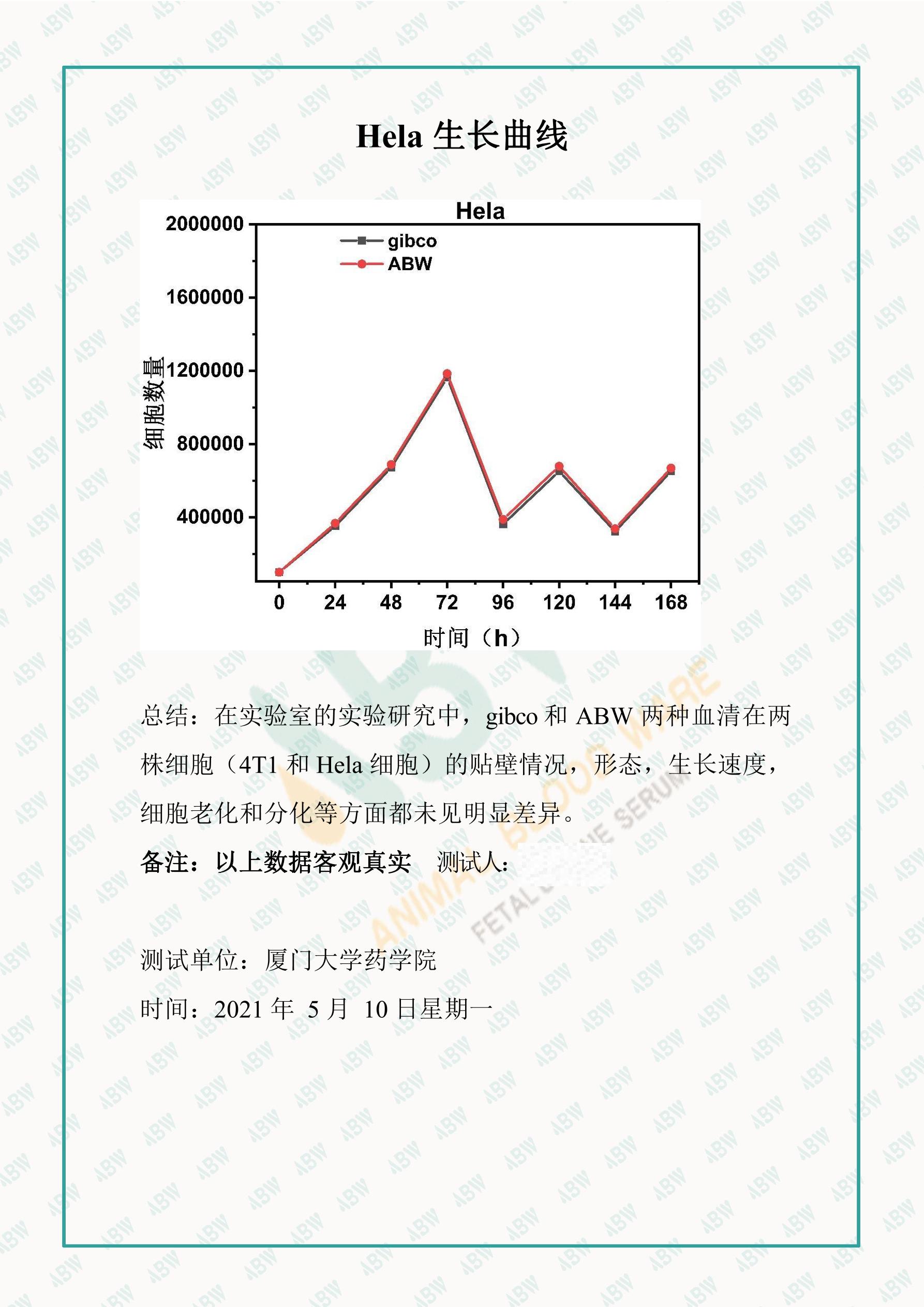 血清公開測試報告-廈門大學藥學院-AB20210302-4T1,hela細胞