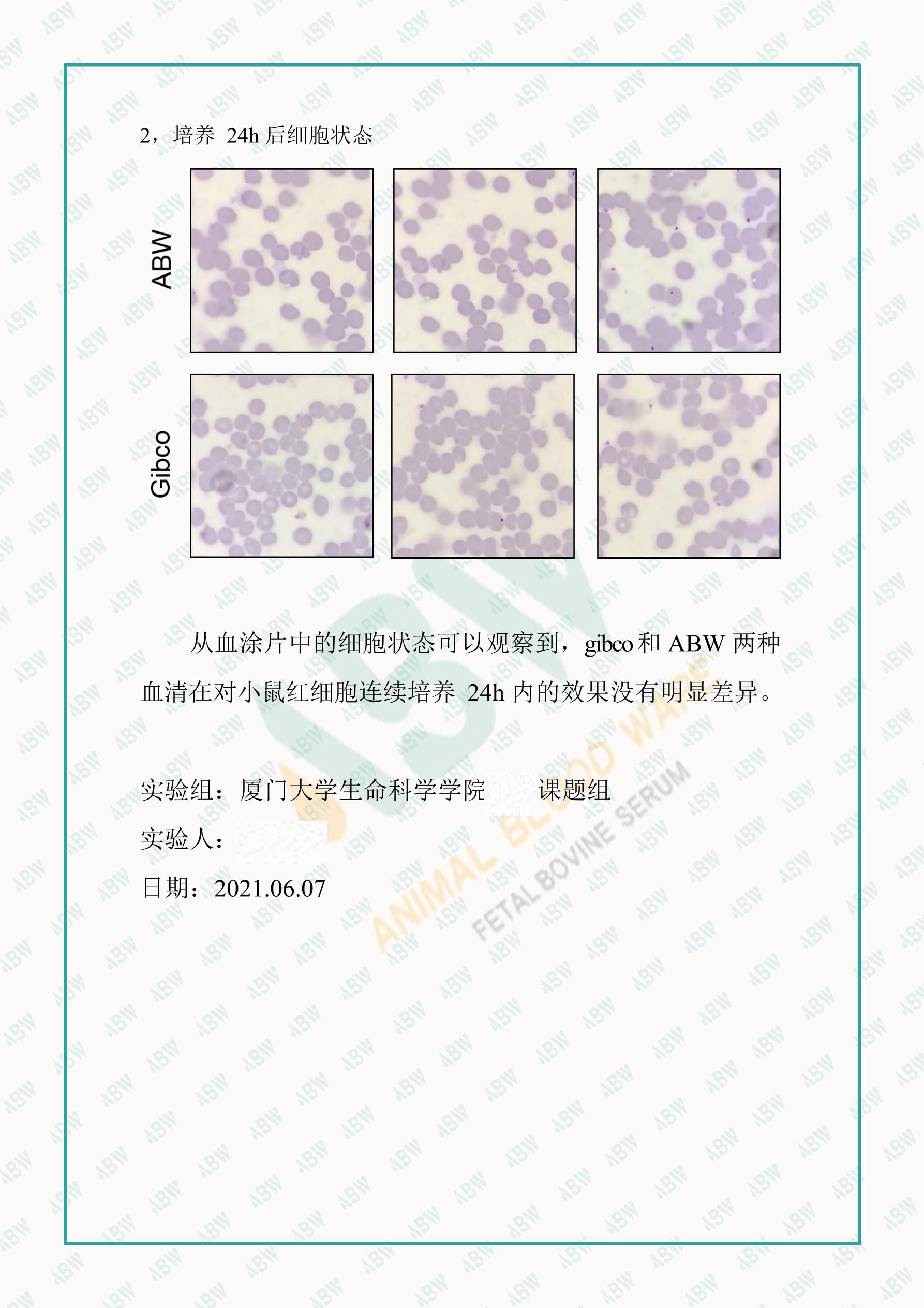 血清公開測試報告-廈門大學生命科學學院-AB20212506-小鼠紅細胞