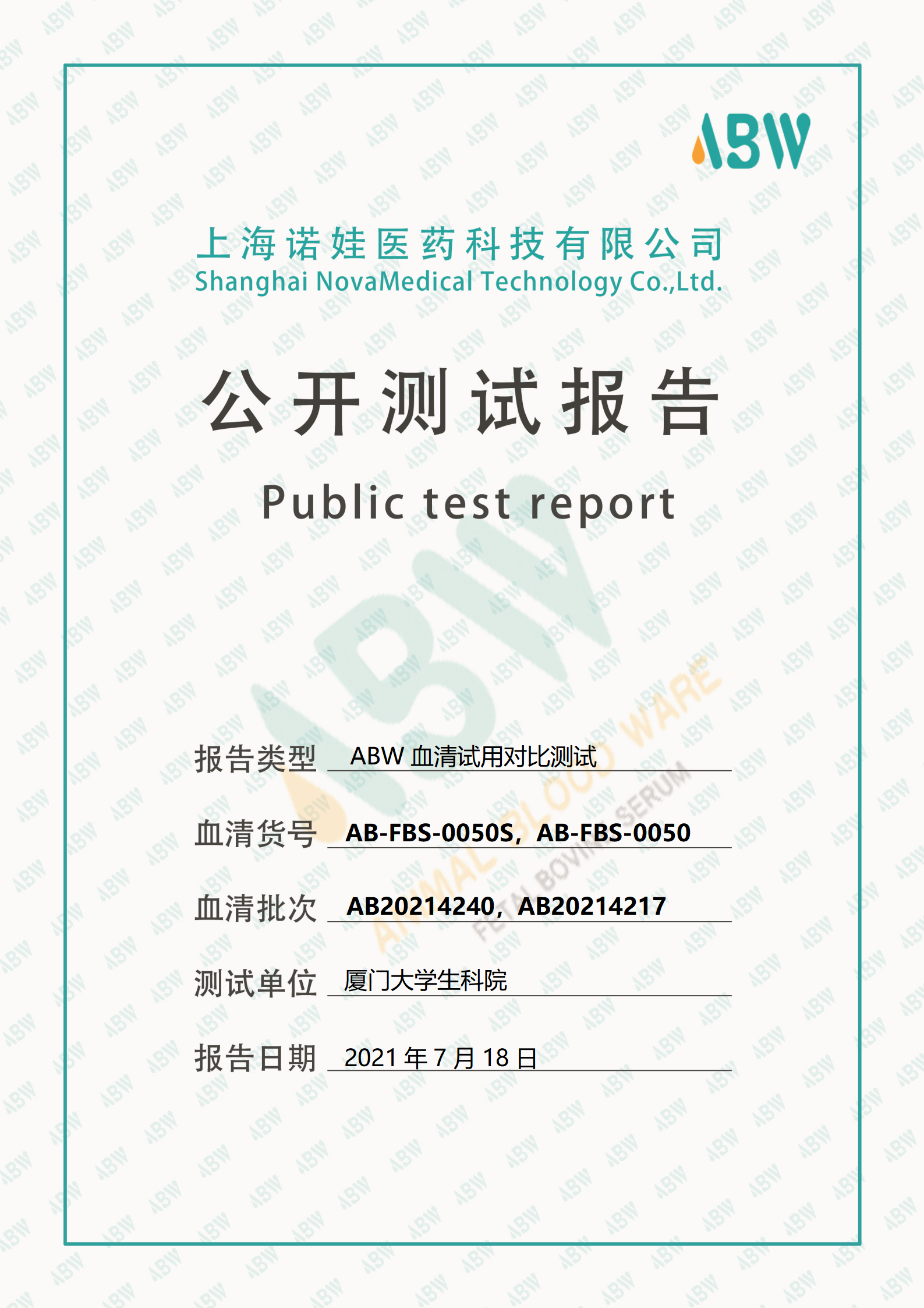 血清公開測試報告-廈門大學生科院-AB20214240/AB20214217-間充質干細胞系/小鼠原代棕色前脂肪細胞
