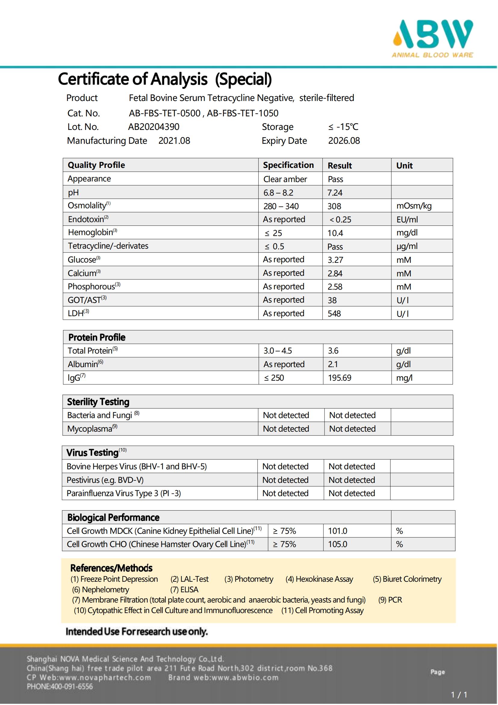 血清 COA