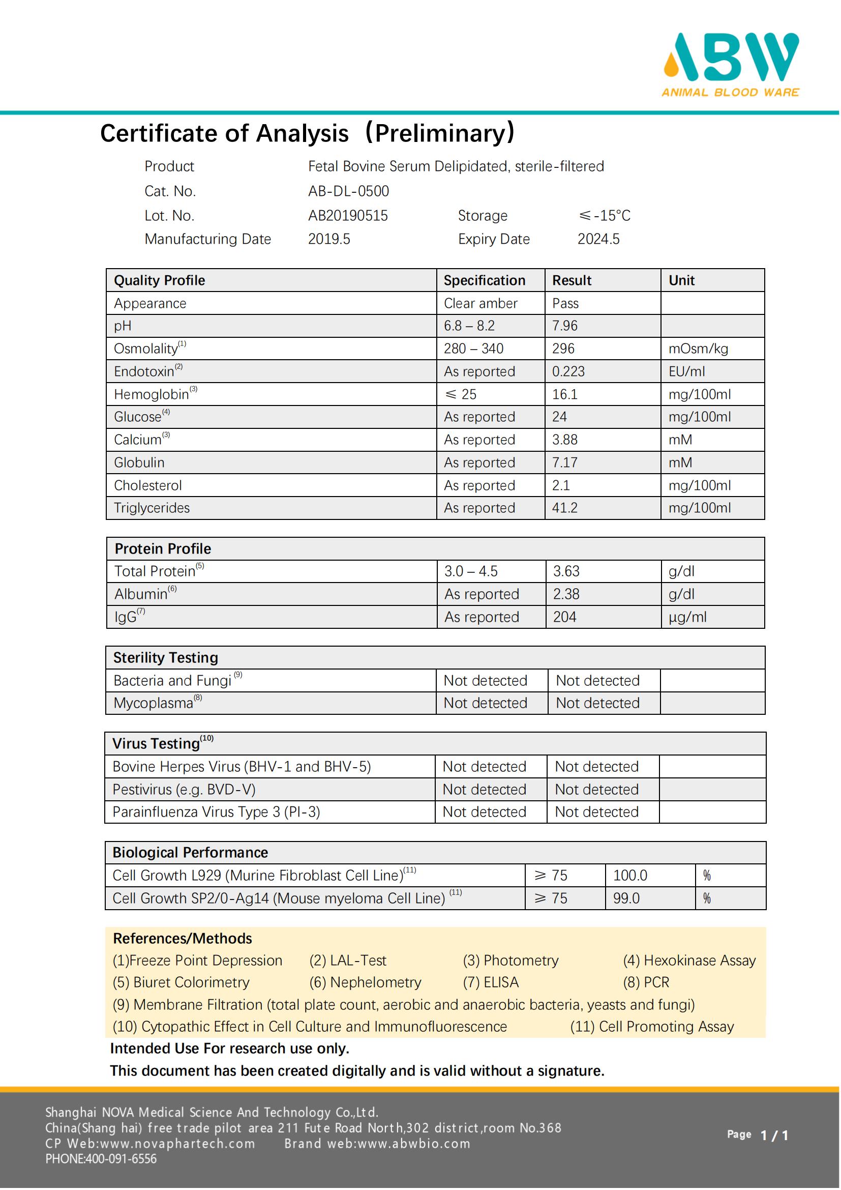 上海諾娃醫藥成立于2017年1月,是一家專業從事于生產、銷售細胞培養產品干細胞及干細胞專用無血清培養基等產品的創新型科技公司。 公司產品主要包括:胎牛血清,細胞庫,干細胞,臍帶間充質干細胞專用無血清培養基,無血清凍存液等眾多細胞培養產品。