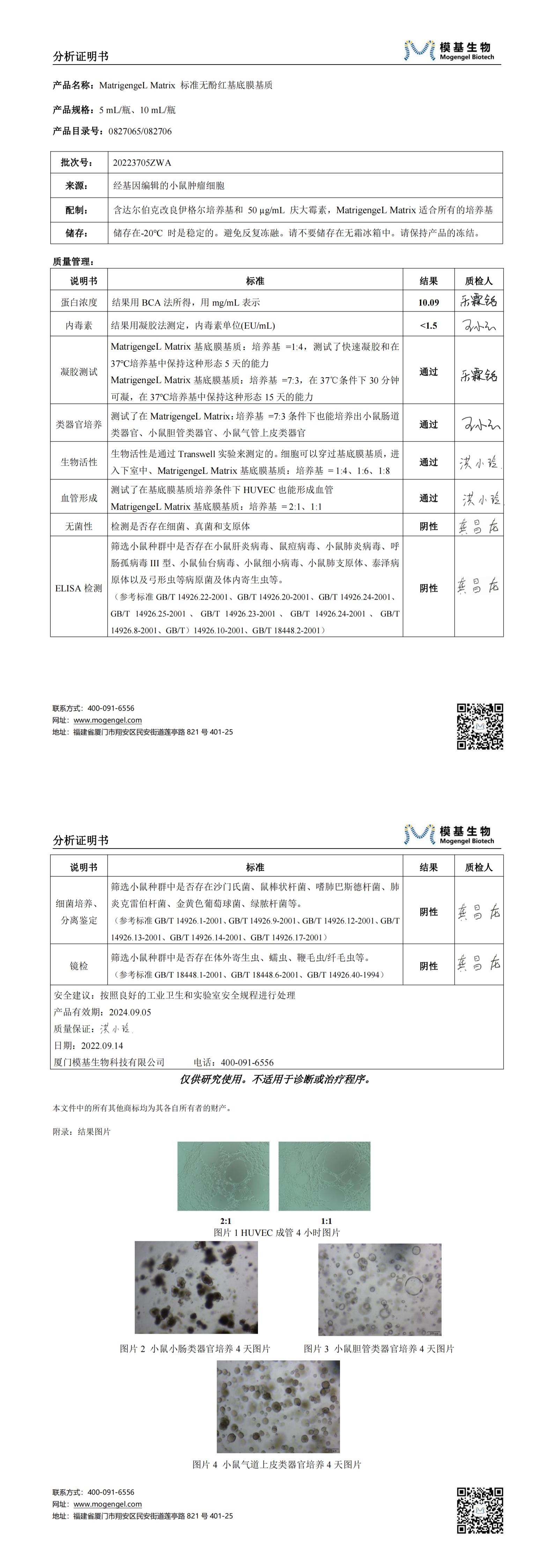 基質(zhì)膠 COA