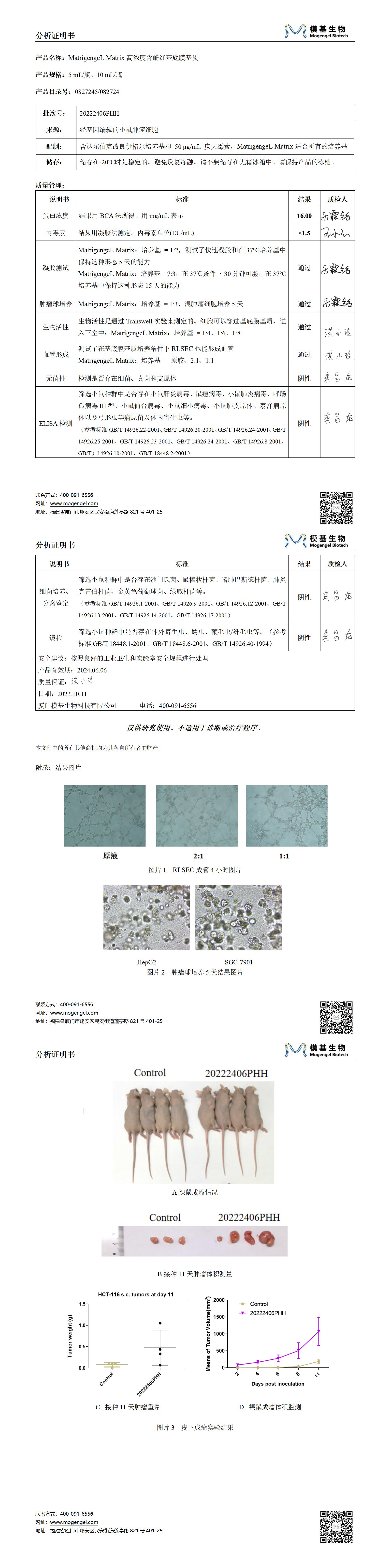 ABW基質膠(Matrigengel)基質是通過基因編輯技術將多種 表達膠原蛋白的基因序列插入到經永生化處理的小鼠腫瘤細胞系中,并在實體腫瘤中抽提出來的。其主要成分有層粘連蛋白、Ⅳ型膠原、巢蛋白、硫酸肝素糖蛋白,還包含生長因子和基質金屬蛋白酶等。