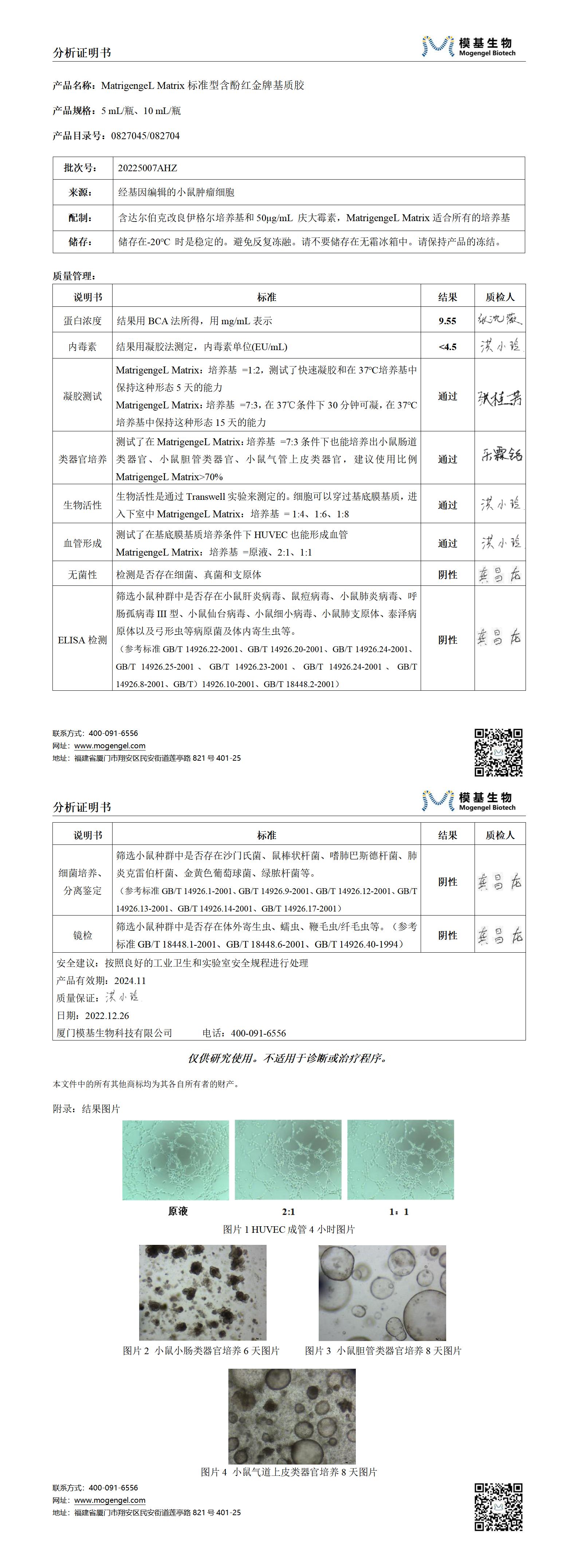 20225007AHZ 分析證明書COA 082704-標(biāo)準(zhǔn)含酚紅基質(zhì)膠