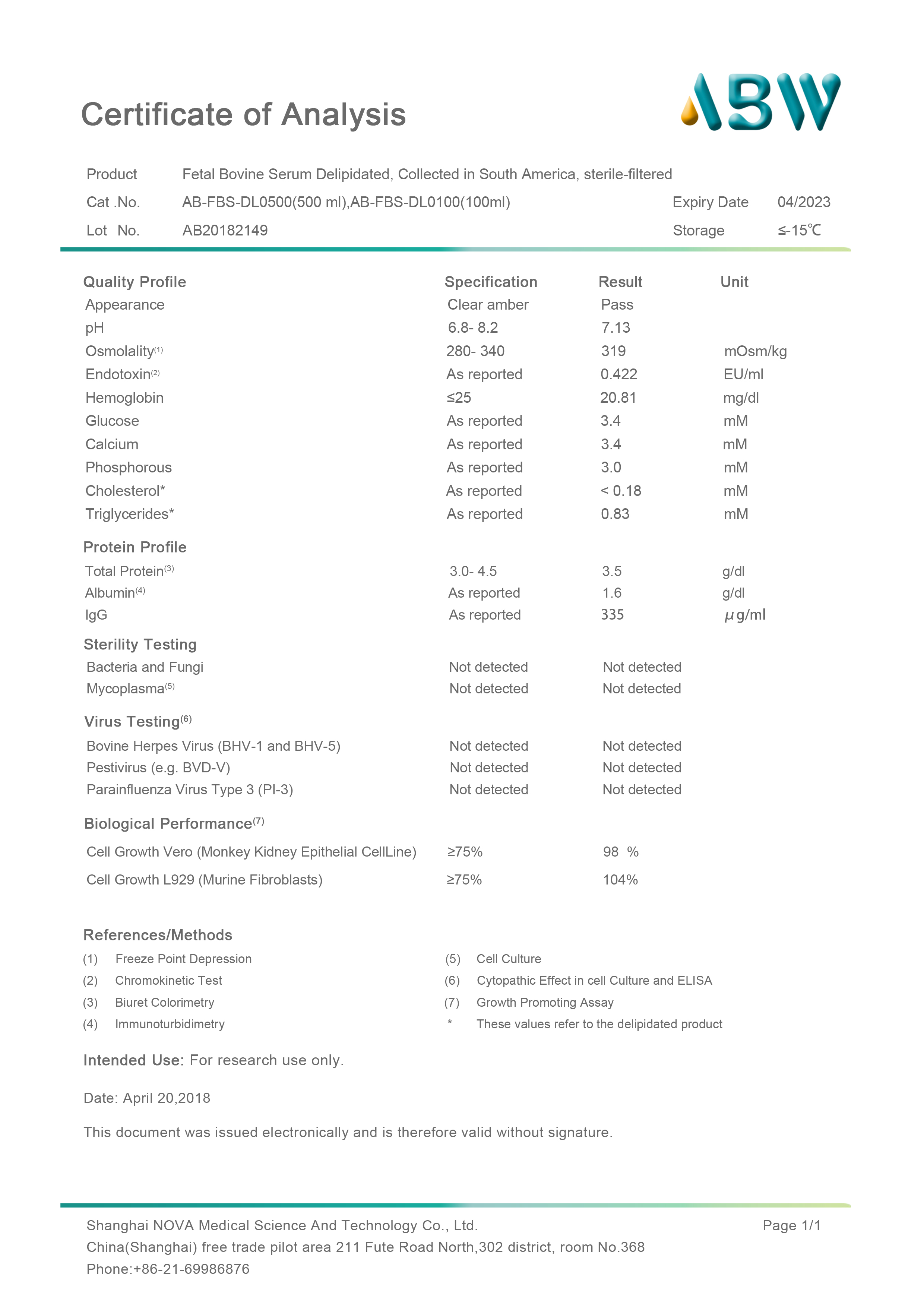 ABW血清產(chǎn)品血源地來自烏拉圭,德國工藝加工,原裝進(jìn)口產(chǎn)品,批間穩(wěn)定性高。